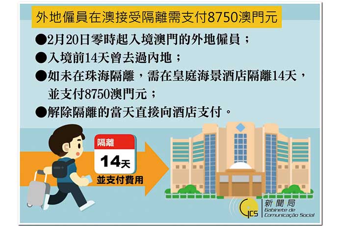 入境前十四天曾到過內地的外僱須接受十四日隔離之措施明日零時零分起才實施,山頂醫院醫務主任李偉成回應稱,由於企業復工需要和響應政府呼籲,外僱在限期前湧澳的情況是無可避免的。