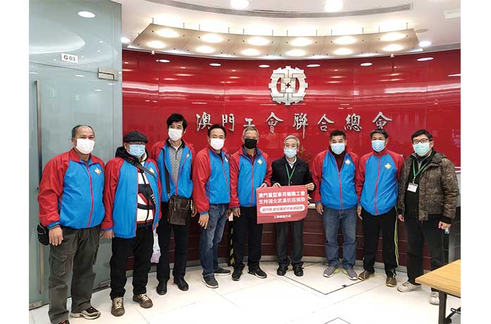 【特訊】澳門重型車司機職工會響應澳門工會聯合總會號召,為支持湖北省的抗疫工作,發揚「一方有難,八方支援」的愛國情懷,向會員發起募捐行動。在理事長蔡文陽及副理事長陳漢標努力下,合共籌得澳門幣壹拾萬零貳仟叁佰元正,並交由澳門工會聯合總會代收並轉交,移交儀式日前於工聯總會大廈舉行,蔡文陽希望工友們的棉薄之力,能為國家打嬴疫情防控阻擊戰作出貢獻。參與移交儀式的負責人還有:副理事長李銳明、鍾紹文、黎國強、何鵬峰、盧銳霆等。