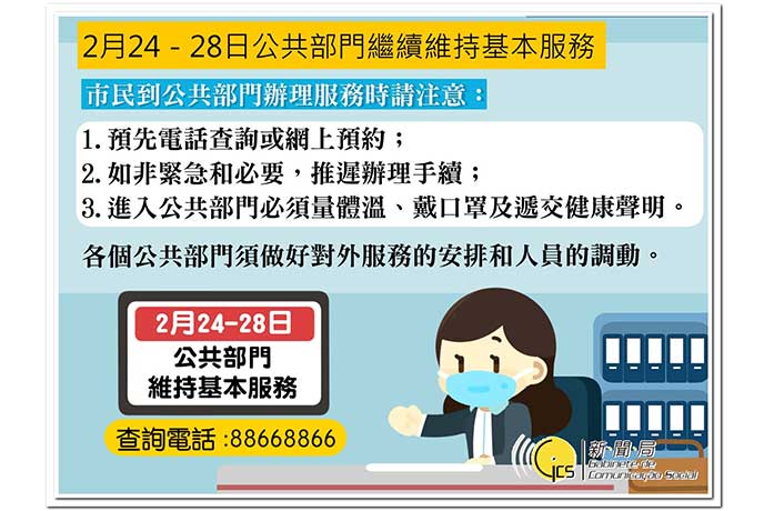 勞工事務局亦高度關注本澳居民的就業情況,若本澳居民於疫情期間遇到就業困難,局方必會全力提供就業支援及協助。居民可於辦公時間致電專線8399 9834與本局職員聯絡。亦可於任何時間登入勞工局網站www.dsal.gov.mo進行網上求職登記,局方會因應實際情況,盡快安排合適配對,平衡人資供需。同時,局方亦可因應市民需要,提供適切的培訓課程,藉此提升技能或協助市民轉業,以達至保障市民持續就業的目的。