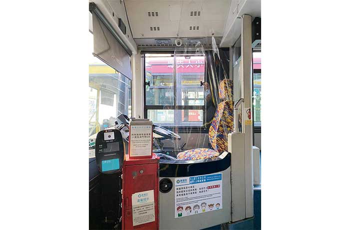 【特訊】為保障車長在防疫期間工作的安全,新福利日前為旗下逾300部巴士車廂的車長駕駛位置加裝屏障,以減低病菌傳播的風險。屏障採用透明膠簾,在不妨礙車長視線和駕駛的環境下,能有效阻擋經由飛沫或接觸染病的機會。每逢巴士到達總站,站務員會噴灑消毒水清潔膠簾,晚上回廠後亦會進行深層清潔消毒,以確保細菌不黏附於表面。