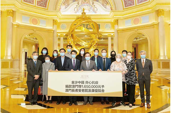 【特訊】在澳門特別行政區政府社會工作局的協調下,金沙中國有限公司於周三在澳門威尼斯人向本澳33間長者及康復院舍捐贈澳門幣165萬元,協助超過3100名長者及康復人士防疫以保障他們的健康,作為公司支持本澳防疫援助工作的一部分。