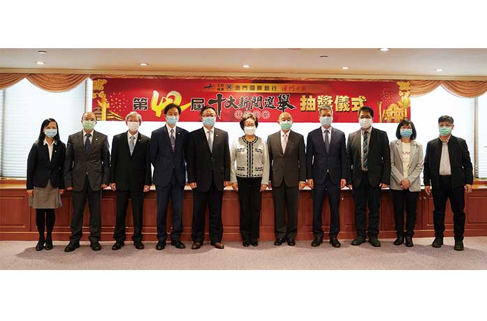【特訊】由澳門國際銀行與澳門日報聯合舉辦的第四十二屆十大新聞選舉競猜遊戲抽獎儀式於昨(27)日下午三時假澳門國際銀行總行大會議室舉行。澳門國際銀行焦雲迪總經理、陳偉成副總經理、胡倫副總經理、吳斯亮副總經理、梁月仙公司秘書;澳門日報陸波社長、溫能漢副社長兼總經理、崔志濤總編輯、常務副總編輯蔡彩蓮、林耀明副總經理;澳門日報讀者公益基金會會長賀定一出席了上述活動,並先後抽出各名得獎幸運兒。