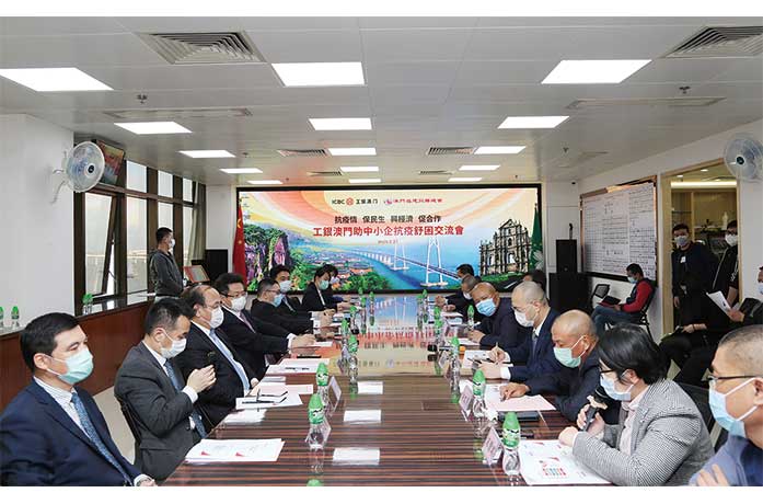 會上工銀澳門介紹為應對疫情,該行所推出十項支持業界抗擊疫情的金融服務,以及七項配合政府提振經濟的舉措,並會配合特區政府加大基建投放,推出總額150億的工程貸款等,又指出疫情期間,工銀澳門一直履行企業社會責任,配合特區政府推出多項銀行金融服務援助中小企業,主動向內地及本地抗疫前線和弱勢社群捐款捐資超過200萬元,面對疫情肆虐,工銀澳門責無旁貸,定必伸出援手,攜手澳門走出困境。