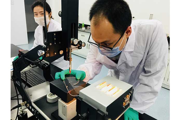 2月28日,貴州貴陽,工作人員檢測抗菌防霧塗層液的效果。針對醫用護目鏡容易起霧的問題,貴州省材料產業技術研究院用一周時間成功研發護目鏡抗菌防霧塗層。經測試效果能保持10天。 (中新社圖片/ 張偉 攝)