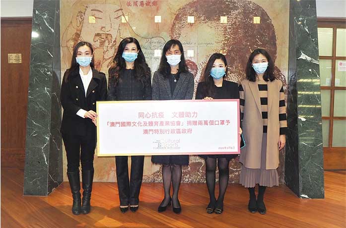 【特訊】為支援澳門特區政府的抗疫防控工作,澳門國際文化及體育產業協會捐出兩萬個口罩予澳門特別行政區政府,為社會貢獻一份力量。口罩全數由協會會長張茜丶副會長郭姿伶和秘書長李逸嘉贈予特區政府,由社會文化司歐陽瑜司長代表接收。