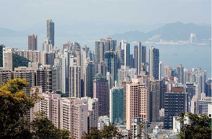 3月6日,反映香港二手樓價走勢的中原城市領先指數最新報174.94,按周下跌1.78%,是2016年3月後最大跌幅,大型屋苑指數同中小型單位指數都跌逾1%,三大指數重返一年前水準。圖為港島樓群。(香港中通社)