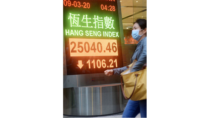 【香港中通社3月9日電】(記者 王姝)產油國減產談判破裂,國際油價暴跌三成,拖累環球金融市場。港股9日收市報25040點,跌1106點,大市全日成交1696.44億元(港元,下同)。