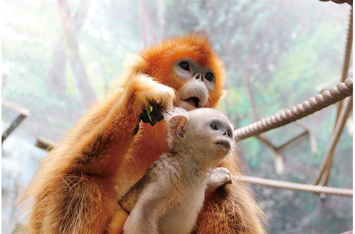 於二月十四日“情人節”當天出生的川金絲猴寶寶,是首隻在本澳出生的川金絲猴,一直被媽媽抱在懷中悉心照料,在充滿母愛的環境中健康成長。猴寶寶滿月後身上的毛髮已由初生時的灰色逐漸換成金黃色,性格亦頑皮好動,不時探頭四處張望,對周圍環境充滿好奇心。