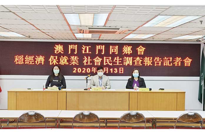 江門同鄉會昨(13)日下午一時假該會會址舉行「穩經濟、促就業、社會民生調查報告」記者會,會長甄瑞權、理事長劉家裕及常務副會長羅彩燕介紹有關詳細內容。