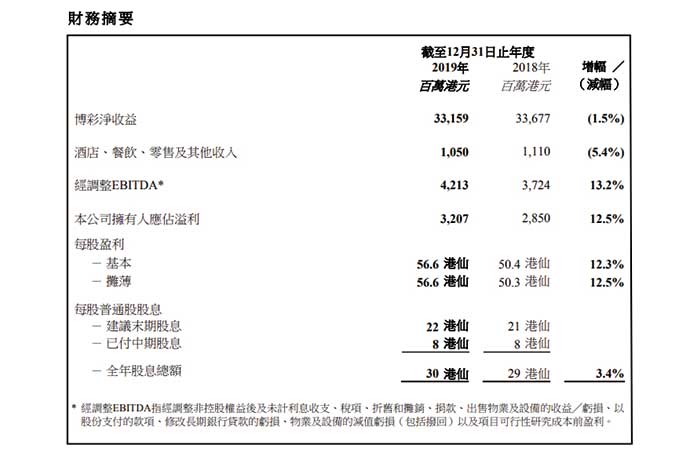 澳博公佈2019年全年業績