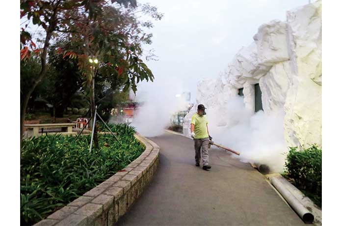 市政署於三月至十一月期間,安排人員於早上六時至九時及黃昏五時至八時在轄下公園、休憩區、小販區、街市及墳場等超過一百七十個地點開展定期滅蚊工作,包括噴灑除害劑殺滅成蚊,以及在一些容易積水的地方如溝渠及集雨水井投放蚊砂預防蚊子孳生,以有效殺滅成蚊及其幼蟲。同時,市政署與衛生局保持緊密的聯繫,會因應本澳誘蚊產卵指數的趨勢而調整滅蚊頻次,做好蚊患預防工作。