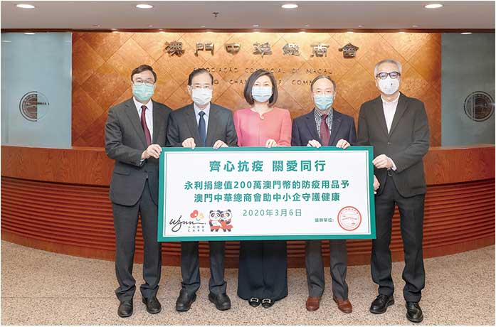 日前,永利澳門有限公司副主席兼執行董事陳志玲拜訪了澳門中華總商會,並就本地企業應對防疫的狀況交換意見,獲澳門中華總商會副理事長崔煜林、黃國勝、余健楚及徐達明等代表接待,雙方均表示關注到本地中小企面對的經營壓力。陳志玲建議,透過澳門中華總商會,向該會會員和本地有需要的企業分發防疫物資,以支持澳門社區一起做好防疫工作,共建有利僱主、僱員和顧客的安全營商環境,此行動亦惠及本地居民,有助增強消費信心。