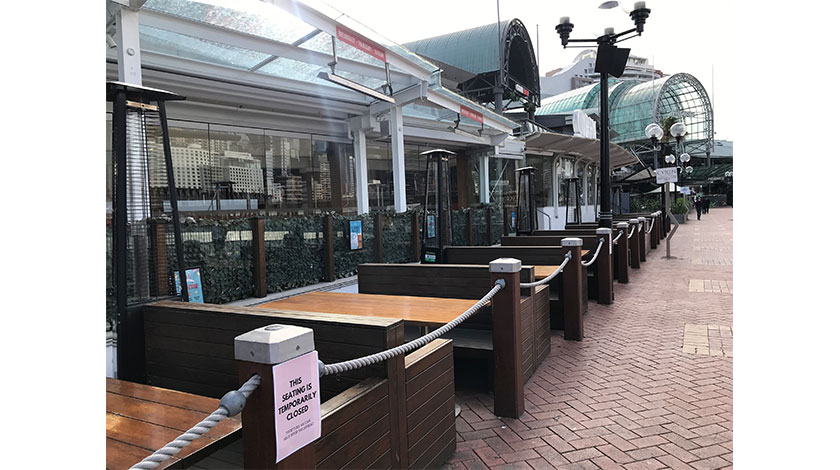 3月23日,澳大利亞實行新限制措施,所有持照酒吧和俱樂部被強制關閉,所有咖啡館和餐館禁止堂食,祗能提供外賣。健身房和室內體育場館、電影院、娛樂場所、賭場和夜總會也將關閉。圖為已關閉的悉尼達令港餐廳。(中新社記者 陶社蘭 攝 )