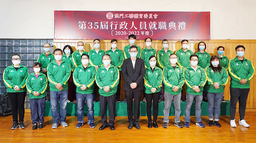 【特訊】澳門工聯體育委員會第35屆行政人員日前在工人體育場B館地下舉行了就職儀式,並邀請了工聯總會李從正理事長主持;李從正代表工聯總會感謝委員們長期積極開展基層康體活動、推動職工強身健體、支持工聯工會會務發展,寄望新一屆委員在阮愛武主任的領導下推進會務改革,繼續為本澳職工及廣大居民在體育領域中多辦好事、實事,為特區構建和諧社會多作貢獻。