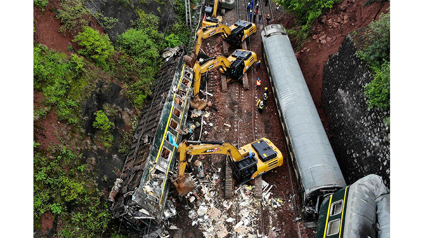 3月30日,挖掘機正在清理事故現場。當日11點40分許,T179次列車途經京廣鐵路湖南省郴州市永興縣高亭司鎮永華村路段時,因附近山體滑坡,撞上塌方體,中斷行車。據郴州市相關部門消息,截至目前,事故已造成1人死亡,4人重傷,123人輕傷。傷員正送往附近醫院緊急救治。(中新社記者 楊華峰 攝)