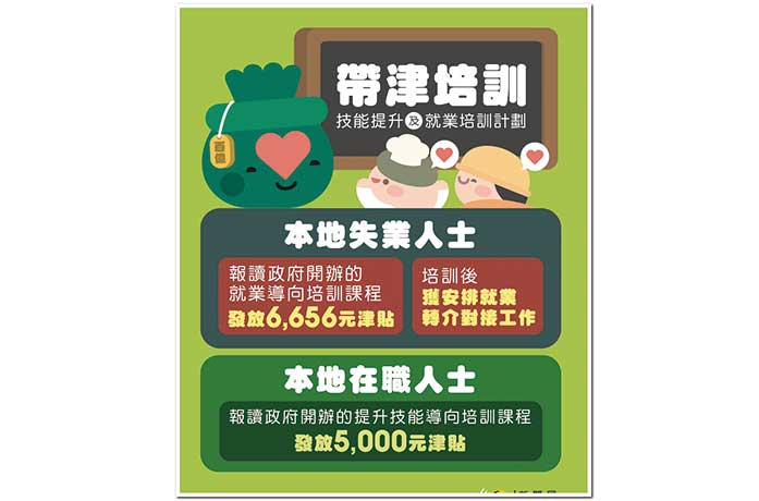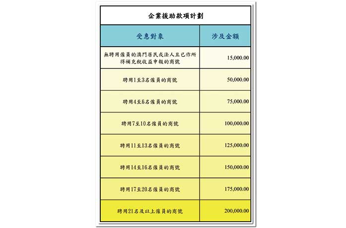 政府昨日公布第二輪疫情經援措施,包括:直接向合資格的本地僱員予以款項援助;向自由職業者給予一次性款項援助,並提供銀行貸款利息補貼;根據企業的運作規模給予援助款項;「帶津培訓」的涵蓋面由本地失業人士擴大至本地在職人士;向全澳居民增發多一次消費補貼五千元。(見另稿)