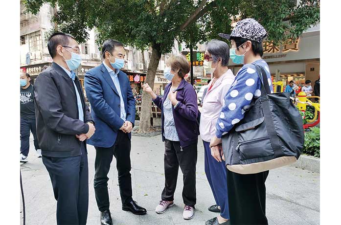 鄭安庭及陳溥森一行昨(9)日到祐漢區巡視,了解舊區民情。多位居住祐漢區的居民反映,居住的大廈樓宇結構及水電管道殘破,渠道老舊破裂,污水橫流,衛生環境惡劣,並長期飽受流鶯及治安等問題困擾,尤其近期因出入境新措施,大量外僱進駐區內,附近的環境衛生及治安狀況變得更差及複雜,希望政府關注。
