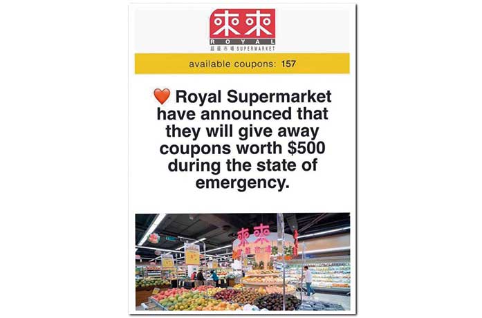 司警表示,接獲「大廈防罪之友」會員舉報,稱於互聯網上看到一個以「來來超級市場」為名的網站,聲稱市民在該網站上登記個人資料後,便可獲派發價值五百澳門元的購物券。