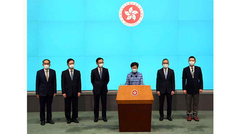 【中新社香港4月22日電】(記者 韓星童)香港特區行政長官林鄭月娥22日宣佈第五屆特區政府主要官員的任免,並率五位新上任的局長會見傳媒。林鄭月娥表示,未來將帶領特區政府管治班子竭盡所能,一方面嚴控疫情,另一方面保就業、撐企業、紓民困,帶領香港早日走出困境。