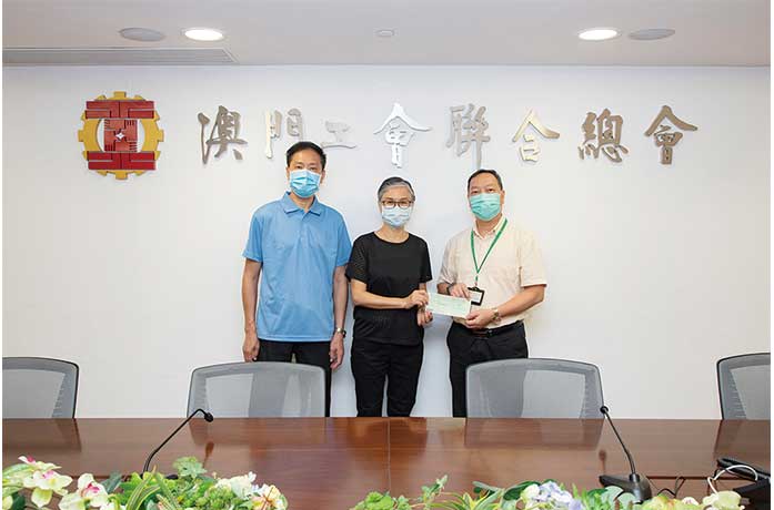 【特訊】工聯總會副會長劉潤輝等負責人日前在工聯大廈,向2019年12月於西灣大橋發生交通意外的工會會員親屬,送上二十萬澳門元會員意外死亡保險賠償。