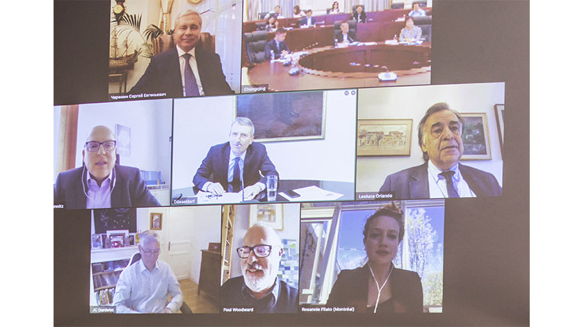 13日,記者從德國杜塞爾多夫市獲悉,在由該市市長蓋澤爾日前發起的國際友城視頻會議上,中國重慶市與杜塞爾多夫及其締結友好關係的歐洲、美洲等多國友好城市圍繞各自抗擊新冠肺炎疫情的經驗進行了交流,展現了與會各國在地方層面加強團結協作、共同抗疫的意願。圖為視頻會議畫面。(中新社發 德國杜塞爾多夫市 供圖 )