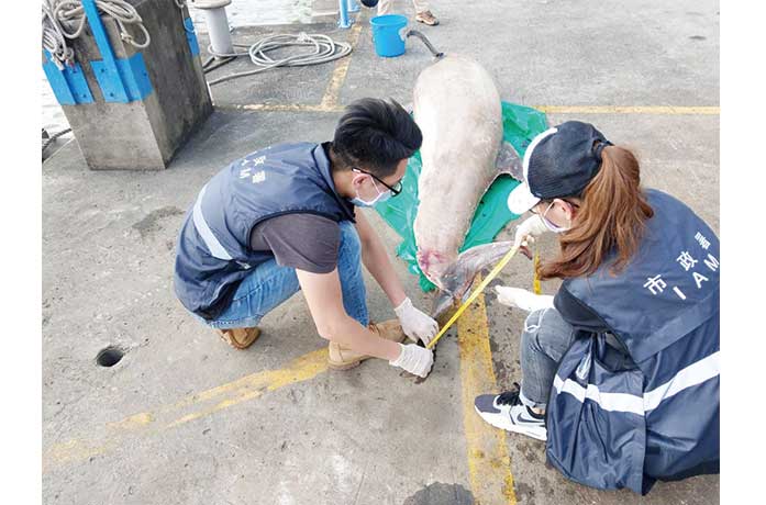 市政署接報後,即時安排人員到現場跟進。經檢查和初步測量後,確定該海豚屬雌性,體長約2.4米,暫未確定品種及年齡,須作進一步鑑定。屍體胸鰭及尾部有瘀傷,發現時腹部因有氣體而輕微膨脹。據獸醫解剖發現,胃內空無一物,亦未有見塑膠製品,具體死因須作進一步研究。