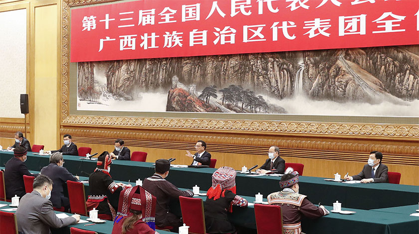 23日,中共中央政治局常委、國務院總理李克強參加十三屆全國人大三次會議廣西代表團的審議。(中新社記者 劉震 攝)