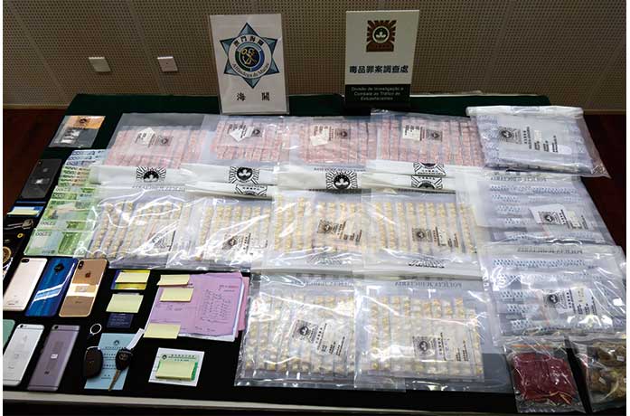 司警上月十一日聯同海關偵破一宗利用快艇偷運毒品來澳案件,並拘捕六人。隨後司警聯同內地警方繼續偵查,鎖定兩名香港主腦組織粵港澳跨境販毒集團,運作約兩個月,利用快艇從內地偷運毒品來澳,又以螞蟻搬家形式經關閘偷運毒品入境,並租用迷你倉作為毒品倉庫。