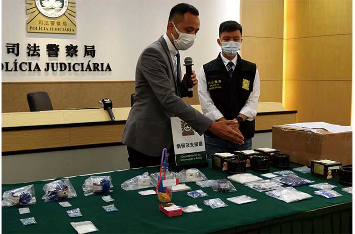 司警局較早前與香港海關進行情報交流得知,有東南亞販毒集團以郵寄方式偷運毒品來澳,並有一毒郵包寄本澳。司警調查後鎖定涉案越女,至前日下午,待她到中區郵局領取毒郵包離開後將她拘捕。在包裹內發現十一樽不同大小的護膚品和七百五十個口罩。司警員在護膚品樽內搜出多種毒品,包括二百克冰、九十八克K仔、二百七十九粒懷疑毒品的藥丸。共值七十六萬元。司警又得知她上月底曾接收另一毒郵包。