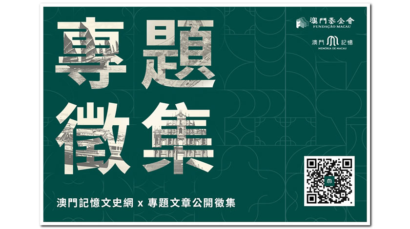 【特訊】為推動“書寫澳門文史,閱讀澳門故事”,澳門基金會開展的“澳門記憶”文史網 (www.MacauMemory.mo) 特設專題欄目,現正公開徵稿,歡迎澳門文史工作者參與。