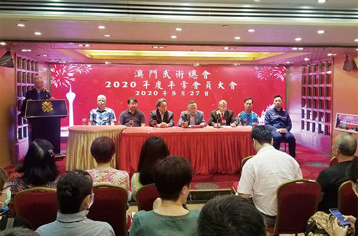 【特訊】澳門武術總會於2020年5月27日(星期三)晚上7時30分,在聯邦大酒樓召開2020年度平常會員大會,出席的屬會代表共有63名。本次大會主要是總結總會在過去一年的會務工作以及議決行政架構補缺事宜。在馮志強會長致詞完畢後陳永傑理事長便作會務的報告,及後將經理事會聯席會議通過之行政架構補缺提名名單交出,會員一致通過。補缺職位及新名單以下:會員大會第一秘書 - 容子恩;仲裁委員會主任 - 楊文堅;理事 - 陳詠兒。