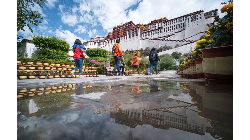 6月3日,參觀遊客走向布達拉宮。當日,西藏布達拉宮有序恢復對外開放。開放期間實行預約、分時、限流參觀,每日預約參觀人數限額2100人,並試行無接觸微信端票務預約系統。 (中新社記者 何蓬磊 攝)