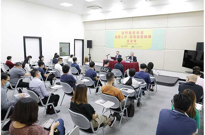 【特訊】澳門青年創業孵化中心舉行“澳門青創學習全國人大、政協會議精神座談會”,由身兼澳區全國人大代表的創孵中心董事長崔世平、澳區全國政協委員黃顯輝向逾四十位青年傳達“兩會”情況。他們鼓勵創業者在新常態下認清形勢、積極創新,調整生意經營模式,視疫情為一次壓力測試,重新起步再發展。