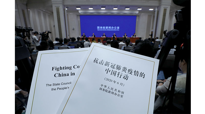 在全國疫情防控阻擊戰取得重大戰略成果之際,中國國務院新聞辦公室6月7日發佈《抗擊新冠肺炎疫情的中國行動》白皮書。這被稱為『真實記錄中國抗疫艱辛歷程的重要文獻』。(中新社記者 張宇 攝)
