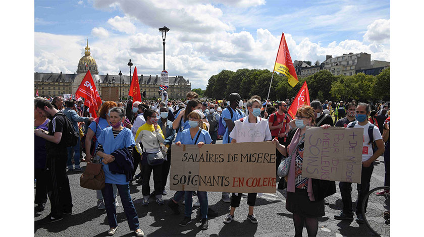 當地時間6月16日,法國醫護人員在巴黎舉行示威遊行,要求分配醫療系統更多資源,萬餘人參加。法國新冠肺炎疫情嚴重,醫療系統面臨巨大壓力。法國官方已啟動醫療系統改革磋商。(中新社記者 李洋 攝)