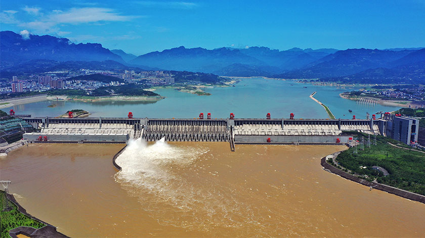 三峽工程安全穩定運行17年以來,防洪減災效益、通航效益、綠電效益等綜合效益顯著。圖為6月30日,湖北宜昌,航拍三峽工程。(中新社發 周星亮 攝)