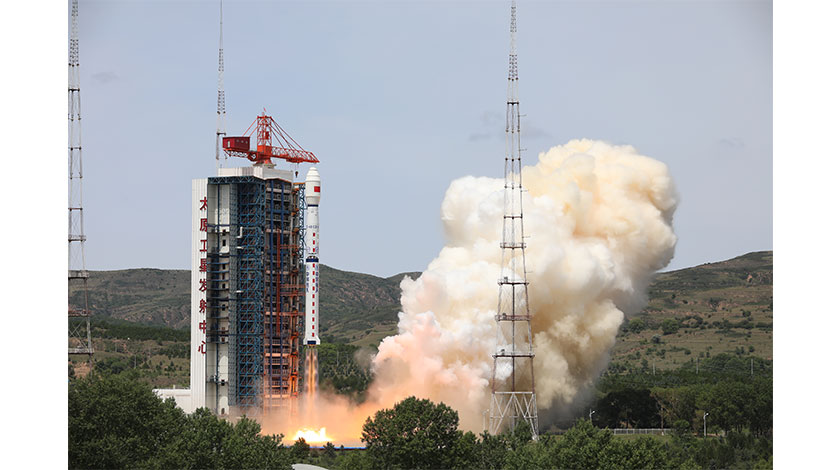 北京時間7月3日11時10分,中國在太原衛星發射中心用長征四號乙運載火箭,以『一箭雙星』的方式成功發射高分辨率多模綜合成像衛星(高分多模衛星)和『西柏坡號』青少年科普衛星。 圖為長征四號乙運載火箭發射昇空。(中新社發 鄭逃逃 攝)