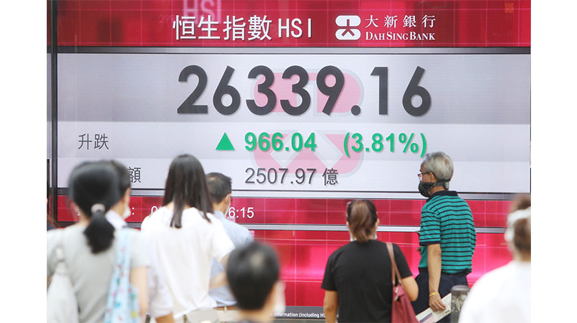 恒指當日高開172點,然後一路上漲,早市升穿250天線(即約26103.15點);午後穩步向上,最高為26453點,是2020年3月5日見26805點高點後的最高,最終收市報26339點,升966.04點,升幅達3.81%。大市勁升,南向資金大幅增加,合計淨流入111.87億港元。