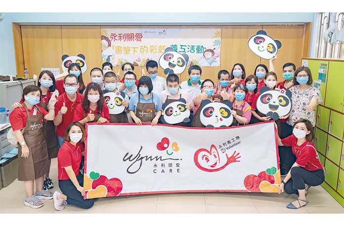 【特訊】由永利澳門有限公司及澳門弱智人士服務協會合辦之永利關愛「畫筆下的彩虹」義工活動,於7月7日下午四時於啟康中心舉行。活動共有10名智障人士及15名永利關愛義工出席。是次活動主要讓智障人士與義工共同完成畫作,提供智障人士展現藝術空間,增加其自信心,以及與社會各界有更多接觸、互動。完成的畫作將於8月份的學員藝術展覽中展出。當日現場還有支票捐贈儀式、熱身遊戲、派發紀念品禮物、合照,所有參加者在歡樂既溫馨的氣氛下完成活動。