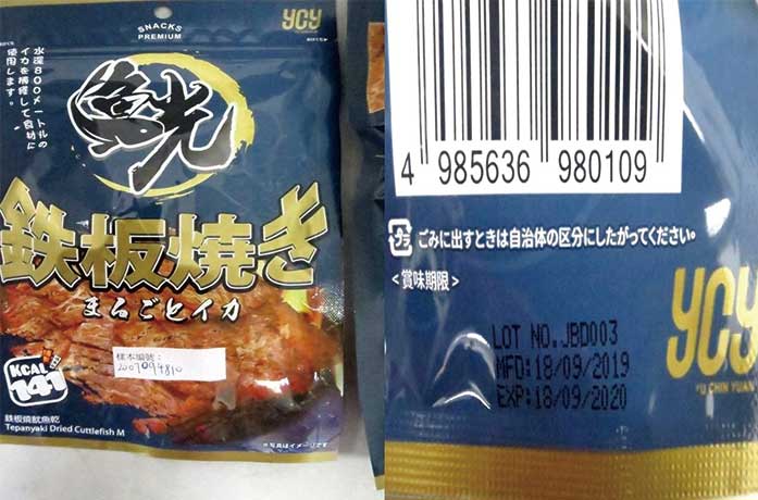 市政署恆常對本澳各零售點的食品抽檢工作中,發現一款名稱為“魚光鐵板燒魷魚乾YCY Snacks Premium”的預包裝零食有明顯發霉的情況。涉事產品的產地為泰國,淨重四十克,批次為LOT NO. JBD003;生產日期為18/09/2019;保質期為18/09/2020。市政署食品安全廳已即時採取跟進措施,勒令涉事商戶停售有關問題批次產品,並追溯產品的來源及銷售流向;同時,向本地食品供應及零售商發出食品預警;由於涉事產品經香港供應商所提供,市政署亦已通報香港食安部門知悉及跟進事件。