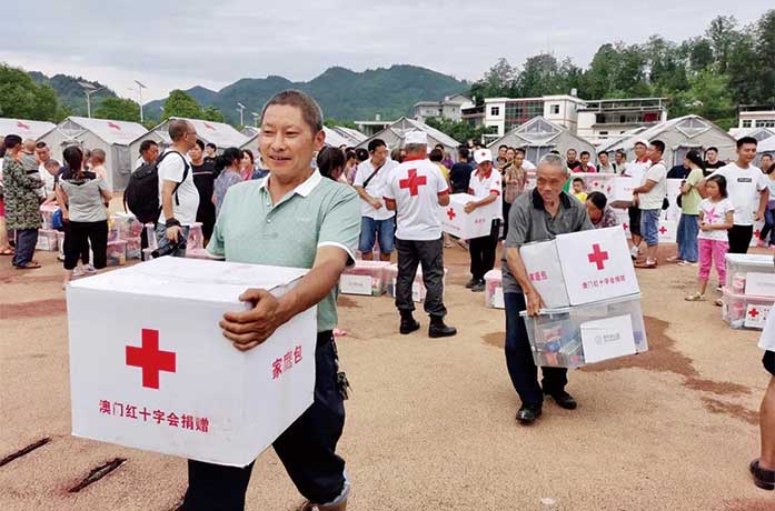 7月8日在貴州省銅仁市松桃苗族自治縣甘龍鎮石板村發生山體滑坡,造成石板村田堡、陳家、石家3個村民組共19戶房屋被淹埋和60戶房屋受損,澳門紅十字會提供的救災家庭包亦透過貴州省紅十字會急運送往松桃受災地區,送到災民手中,協助他們渡過難關。7月初,連續強降雨造成江西上饒、景德鎮、九江等6個設區市36個縣共60.6萬餘人受災,需要緊急轉移和安置群眾。家庭箱中包含乾糧、毛巾、香皂、紙巾、拖鞋、餐具等日常必須品。澳門紅十字會持續密切關注各地災情,隨時再作出應急救援,協助當地紅十字會救災。