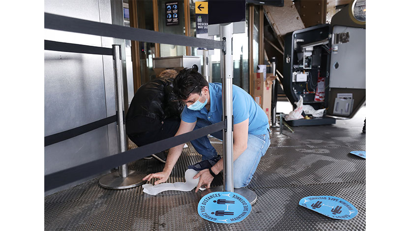 15日法国巴黎地标性建筑埃菲尔铁塔当天开放顶层观景平台,参观者可乘坐电梯至顶层俯瞰巴黎全景。(新华社记者 高静 摄)