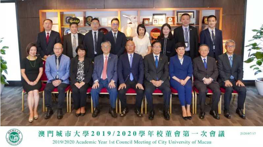【特訊】澳門城市大學於7月17日在氹仔校區舉行2019/2020學年校董會首次全體會議,由校董會主席陳明金博士主持。陳明金博士於會議中宣讀校董會成員名單,介紹了校董會及其職權,並通過了校董會規章制度。會議上也討論大學發展方向與計劃。因新冠肺炎疫情影響,現身處北京的原清華大學副校長謝維和教授透過視訊參與會議。