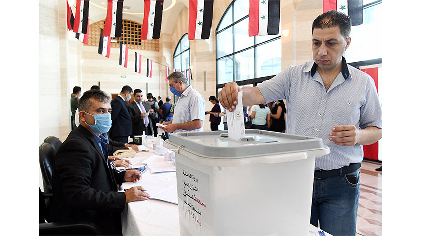 敘利亞19日舉行議會選舉,來自不同政黨和以獨立身份參選的1656名候選人角逐250個議會席位。新華社發(阿馬爾•薩法爾賈拉尼攝)