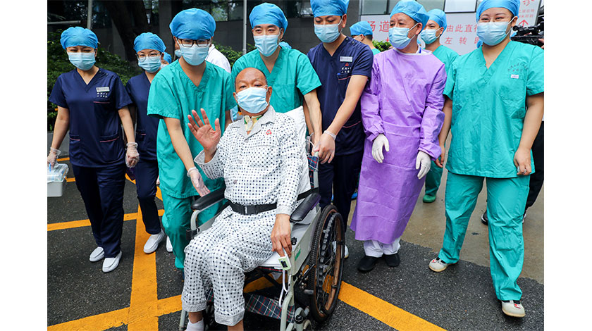 7月21日,在醫院救治166天、接受肺移植手術92天后,湖北首例新冠肺炎終末期肺移植患者崔志強從武漢大學人民醫院出院。院方介紹,崔志強是目前全球已開展的10例因新冠肺炎接受肺移植手術的患者中,首位達到出院標準的患者。(中新社記者 張暢 攝)