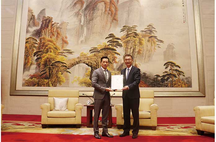 【特訊】德晉集團行政總裁、德晉慈善會主席陳榮煉帶領一行於21日拜訪中聯辦,獲副主任姚堅親切接待並頒發捐贈證書以表彰其疫情期間的貢獻。雙方就澳門及內地慈善事業、新冠肺炎抗疫工作及未來發展等方面進行了交流。