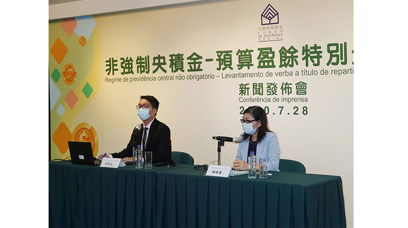 社保基金昨舉行新聞發布會,由社保基金中央公積金制度廳廳長楊婉麗及公積金綜合事務處處長何凱生介紹有關安排。
