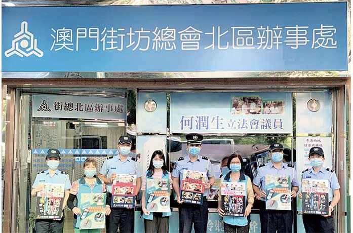 【特訊】街坊總會北區辦事處長期關注區內治安問題,日前,祐漢區發生金行搶劫案,街坊總會北區辦事處為加強居民的防範意識,聯同治安警察局在北區一帶沿途向居民及商戶派發多款防罪滅罪宣傳品,同時講解近期詐騙犯案手法和正確使用消費卡資訊,以提升居民防罪意識,並呼籲居民時刻保持警惕,發揮鄰里互助精神,主動舉報可疑人士。