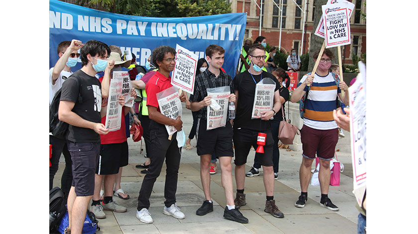 當地時間8月8日,數百名英國國家醫療服務體系(NHS)護士走上倫敦街頭遊行,抗議不公平的薪資待遇。英國多地同日舉行了此類遊行。(中新社記者 張平 攝)