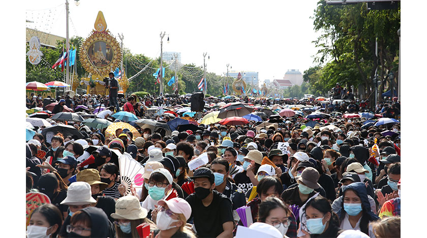 當地時間16日,由『自由人民』『自由青年』和泰國學生聯盟等團體組織的大規模抗議集會在曼谷民主紀念碑前舉行,他們呼籲民主,表達對政府的不滿,要求當局解散國會、重新起草憲法、停止恐嚇人民。同日稍早前,泰國支持君主立憲制的組織也在附近舉行集會,表達對王室的愛戴和支持。(中新社記者 王國安 攝)